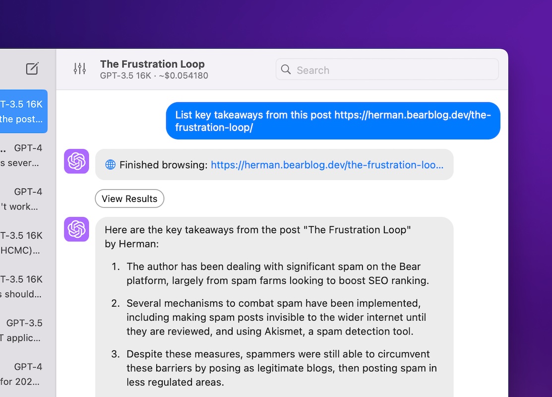 Can't search in ChatGPT? BoltAI to the rescure.